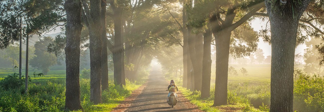 Phương tiện cá nhân như xe máy hoặc ô tô đều dễ dàng tiếp cận. Con đường đẹp nhất vào sáng sớm hoặc xế chiều, lúc ánh sáng dịu và khung cảnh đầy chất thơ.